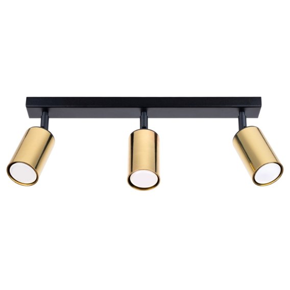 Źródło światła: GU10, 3x max 10W LED, ~230V, 50Hz, IP20, klasa ochronności IŹródło światła nie jest w komplecie.Wymiary: 45/6/18,5 cmMateriał: stalKolor: czarny, złoty