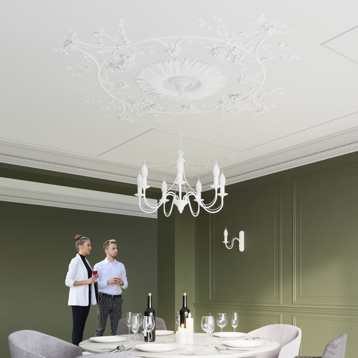Czerń i biel to klasyczne barwy, dla których znajdzie się miejsce w każdej aranżacji. Jednolita kolorystyka pozwala wybrzmieć bogatym zdobieniom żyrandola świecznikowego - zapewnia idealną równowagę między formą a treścią.