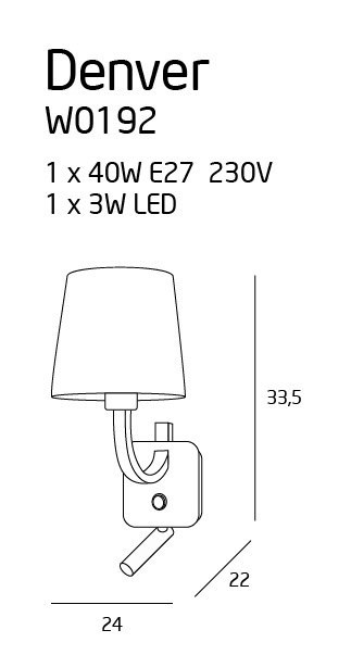 Moc/Power: 1 x 40W E27 + 1 x 3W LED 230V